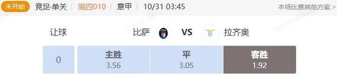 竞足 周四010 意甲 比萨VS拉齐奥